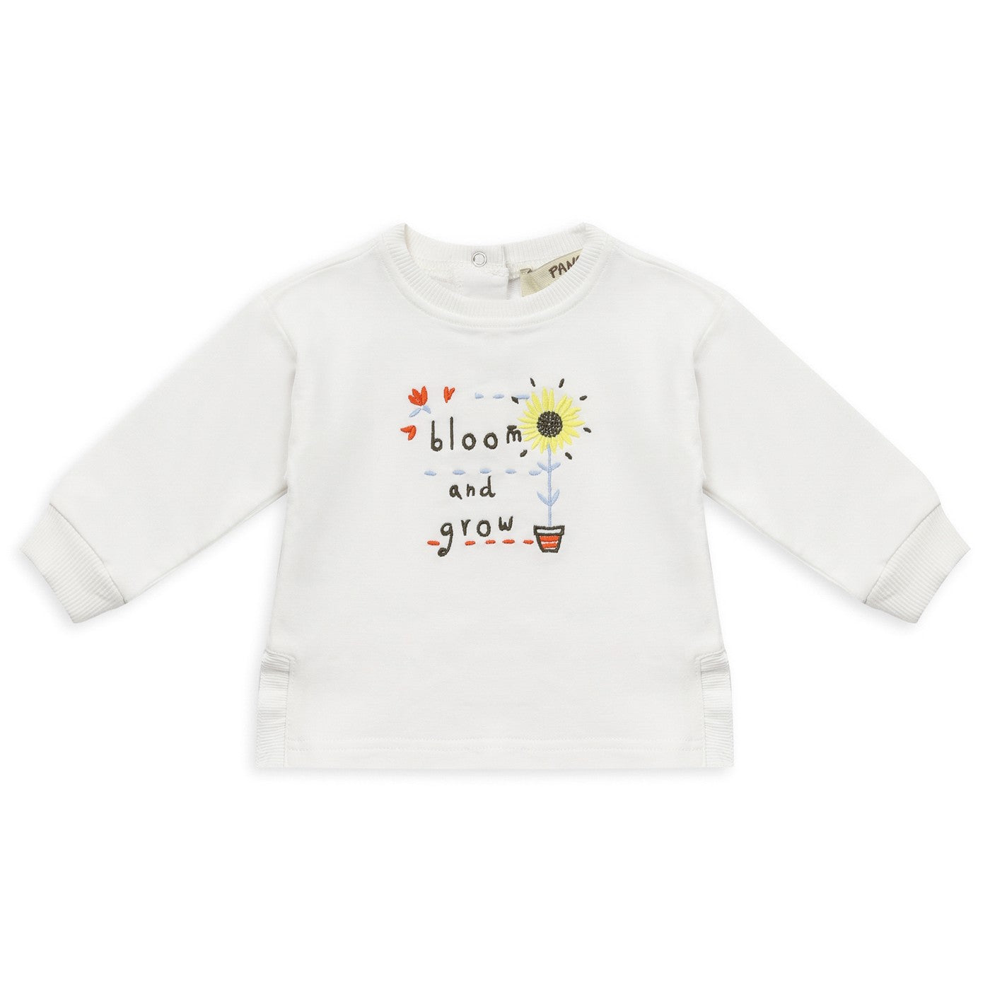 Relaxed Fit Sweatshirt with Daisy Embroidery Detail, Slit in the Hem, and Snap Fastener on the Back.